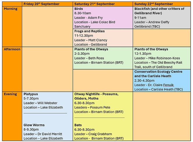Friday 20th - Sunday 22nd Sept. All coordinated Otway Biofest activities will be in and around the Central Otways.